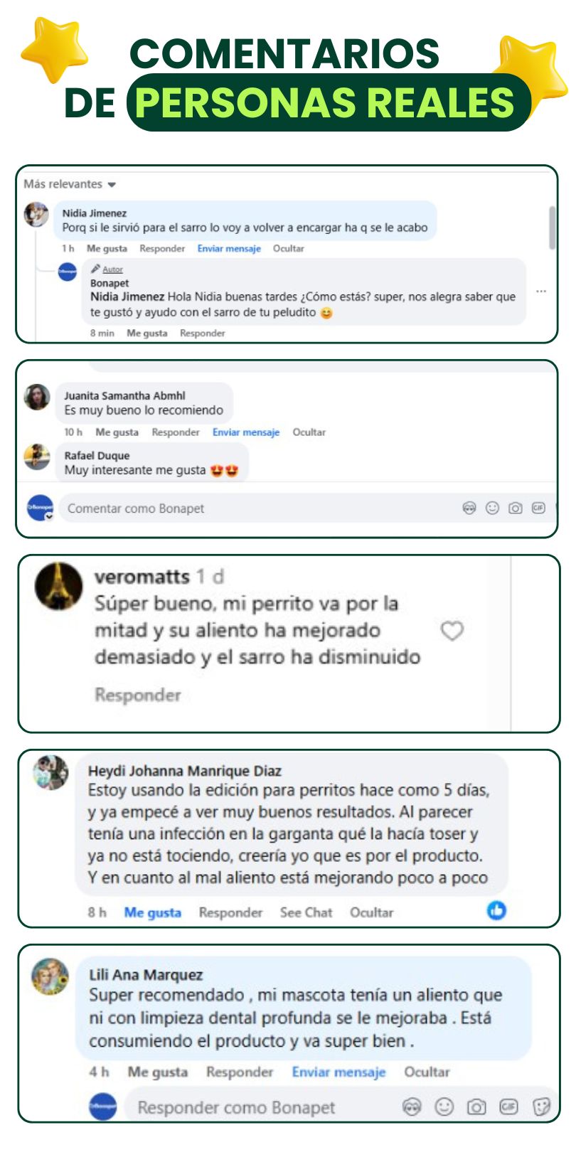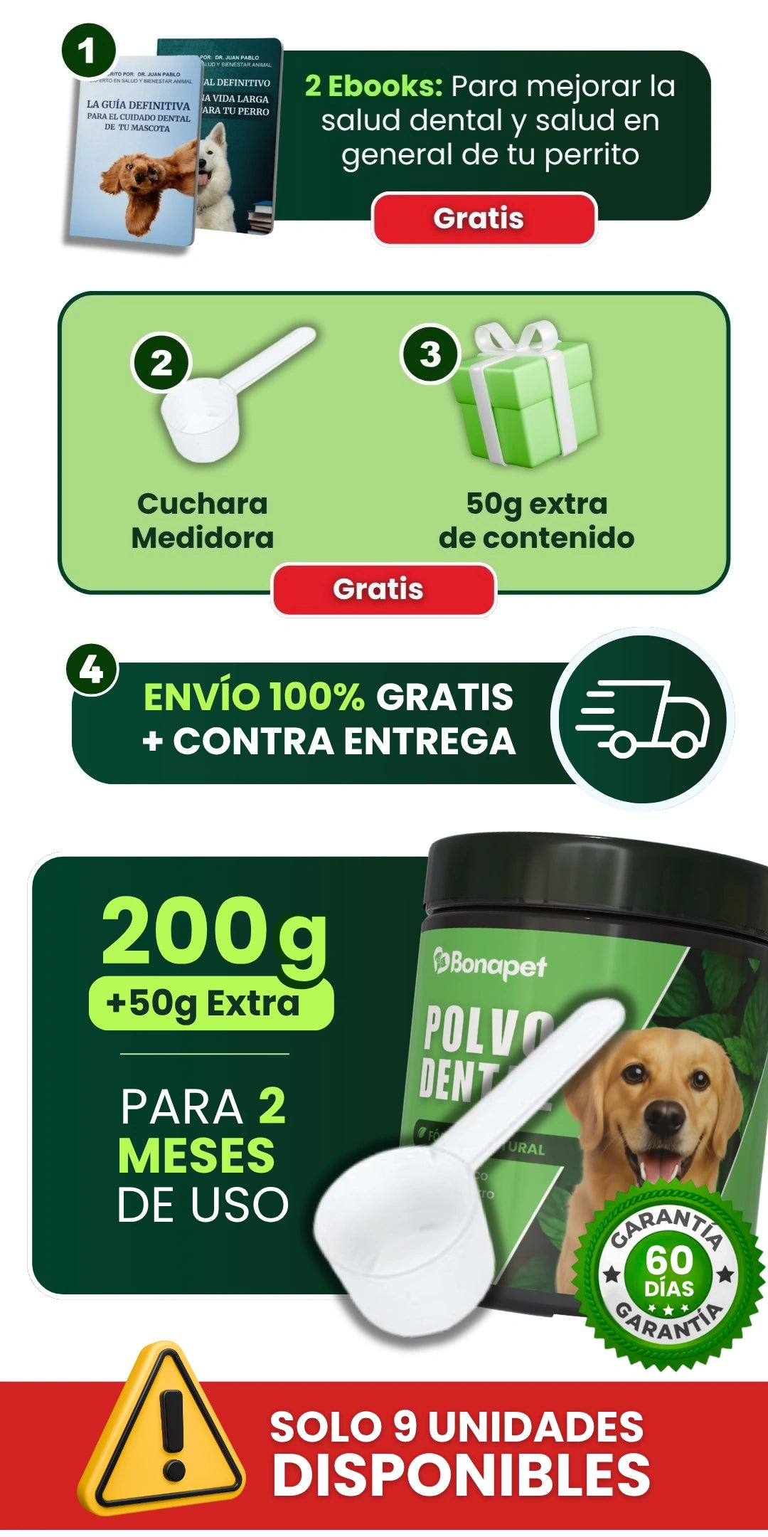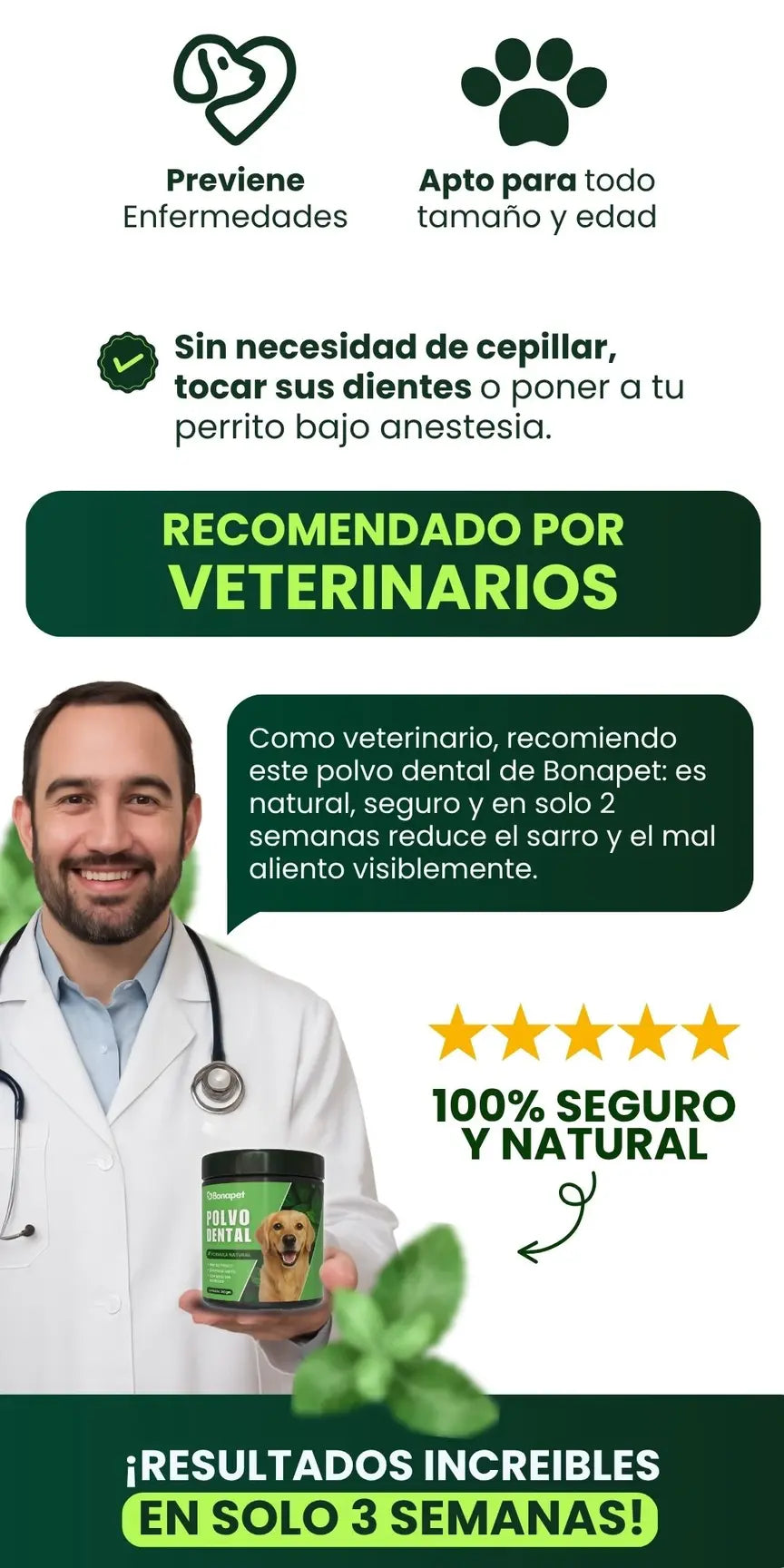 Sí, este producto es perfecto para perros mayores con problemas dentales. No solo limpia el sarro acumulado de manera efectiva, sino que también elimina el mal aliento al combatir las bacterias que lo causan. Lo mejor de todo es que no necesitas recurrir a anestesia ni a procedimientos invasivos.